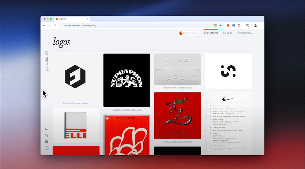 Right click an image to save it to your mind. On mobile, long press and share it to the mymind app.